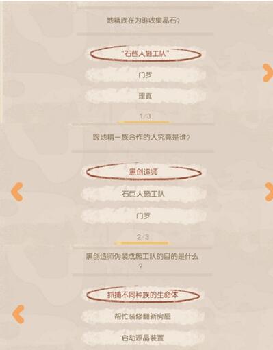 答案:石苣人施工队、黑创造师、抓捕不同种族的生命体。
