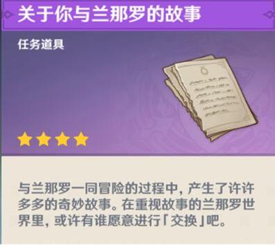 3、完成任务就可以获得你与兰那罗的故事任务道具;