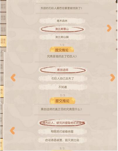 3、回答结论:奥比斯雪山、黑创造师、抓捕石巨人,研究并提取他们的能量。