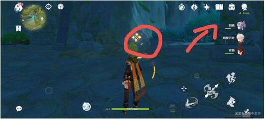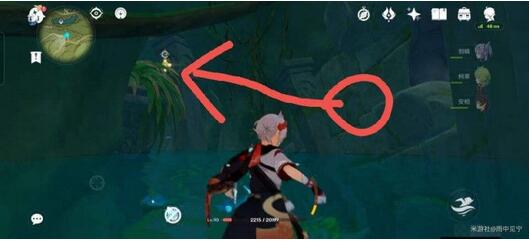 跟着仙灵走我们会在水中游一会,然后在下图位置等一下体力