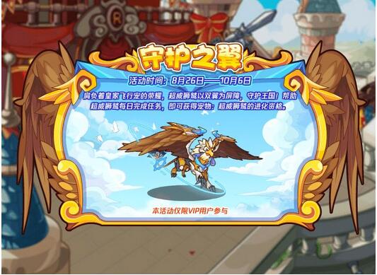 洛克王国守护之翼活动玩法是什么?守护之翼是洛克王国在近期上线的全新活动,本次活动比较特殊,仅限VIP玩家可以参与本次的活动。玩家需要根据任务提示完场每日的任务,完成任务后即可获得超威狮鹫的进化资格。想要参与本次活动的玩家要尽快的充值成为VIP,有很多的玩家想要知道洛克王国守护之翼活动玩法是什么,那么接下来就由小编为大家带来洛克王国守护之翼活动玩法攻略,感兴趣的玩家快来了解一下吧。