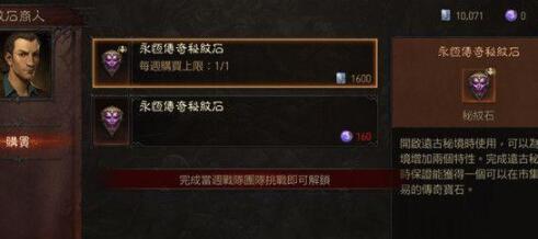 3、火男刷完后给一个闪光卷,完成挑战魔神后可用闪光券激活钥石商人处白金币购买钥石资格,资格当周有效。然后在钥石商人处可以解锁闪光强化不朽钥石的购买,这个东西1600。可以在不朽秘境中使用,必定掉落符文和可交易的传奇宝石。