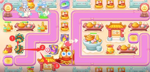 1、这一关我们可以选择的炮塔为毒针、泡泡塔、闪电炮、多重箭、烟花,这一关需要使用多重箭和烟花输出。