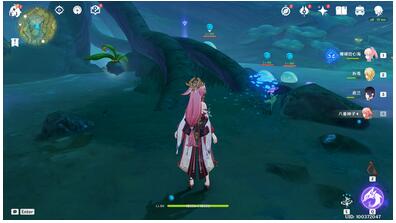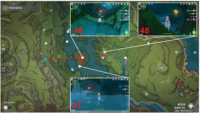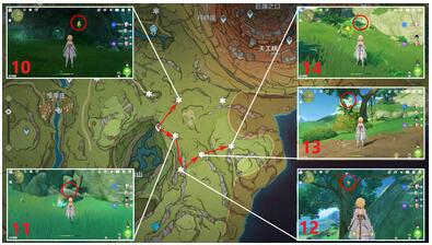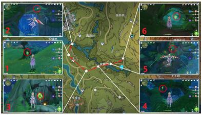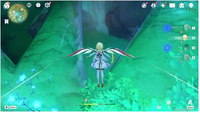 (11)回到传送点,向南攀爬(利用四叶印和跳蘑菇),在幽花前弹,神瞳就在石头后面