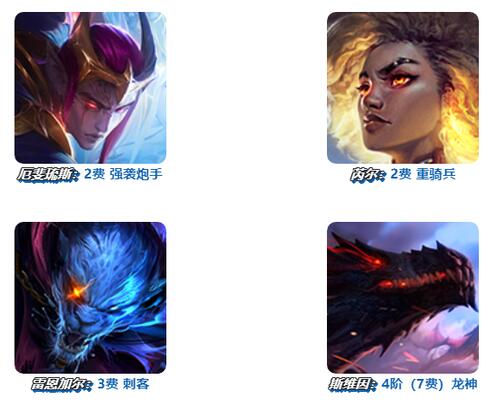 黯灵龙:战斗开始时,黯灵龙格中的弈子被献祭,将其身上的随机装备复制给所有黯灵龙英雄,并提供生命值加成,随羁绊阶数(2/4/6/8)提高。