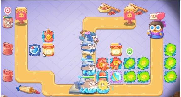 3、第三波,鞭炮在增加一个,有时间就锁定左边药柜减减障碍物的血,左边小药罐打掉之后建立一个鞭炮,有金币升满级。