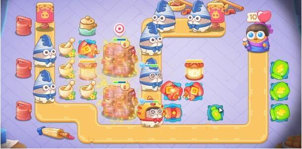 9、第九波现在左下角增加一个泡泡塔,在左中增加一个鞭炮,火力不够可以在泡泡塔右边增加瓶子炮,具体塔防如下。