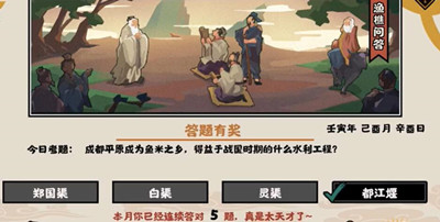 无悔华夏渔樵问答9月5日答案是什么?无悔华夏这款游戏采用了中华大地的历史题材,以时代为边界,构建出史诗篇章,展现了我们中华五千年的悠久历史,这也是这个游戏的一亮点。游戏中有许多的问题供玩家进行回答,熟悉的玩家当然是顺手拈来,这期的渔樵问答9月5日题目,只要回答对了里面的各种问题才可以得到奖励,今天的题目是“成都平原成为鱼米之乡,得益于战国时期的什么水利工程?”这是在古史上属于名闻千古的工程,感兴趣的和小编一起看看吧。
