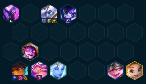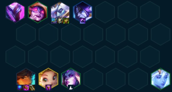 利用前期优势尽快拉七,小搜出婕拉开出2幽影的羁绊,一般不在7人口做停留,存钱迅速上八,选秀有佐伊/法师纹章都可以无脑拿。