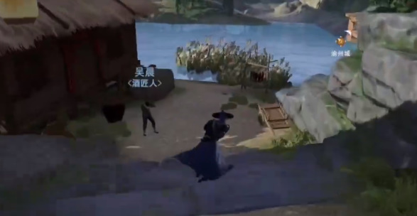 3、喝完酒以后并没有找出原因,然后去青山村找到货郎。(注意:该NPC是会移动的,我们看可以在下图等待他经过)