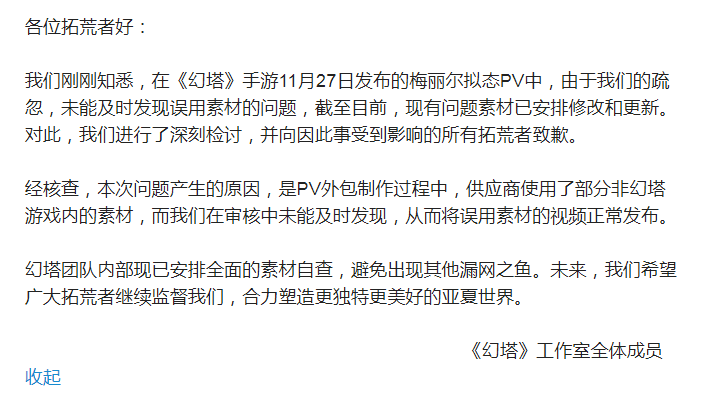 【官方道歉声明】