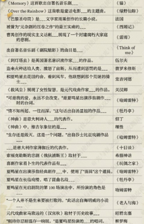 21.夏鸣星在光启刷院的第100场演出中,所扮演的角色是?答案:哈姆雷特