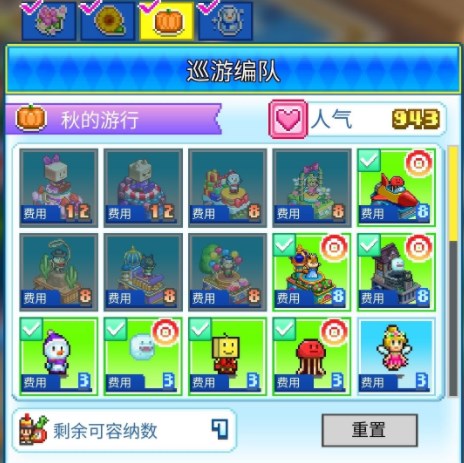 可容纳数通过<世界第一的游行>进行提升,可以设置更多的吉祥物与花车。