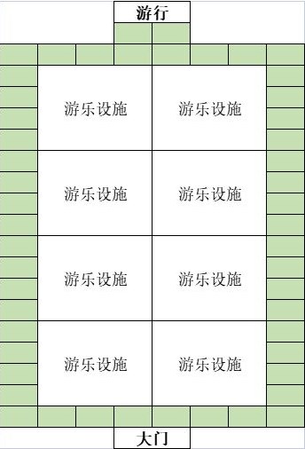 也可以在设施中间设置通道,不在另做示意图,只要保证游行道路是在主干道上即可