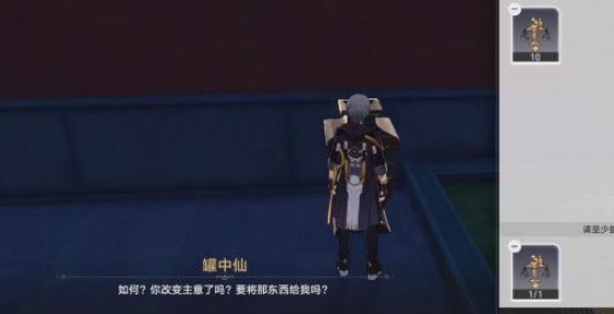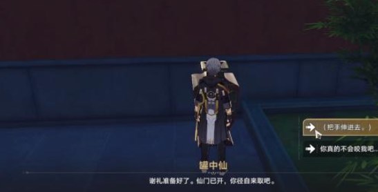 2、对话之后玩家需要交给罐中仙一个谢礼,就是一个道德崇高的赞许;