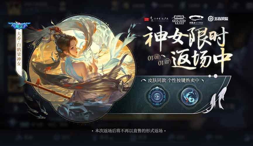 这是大乔-白鹤梁神女从2021年7月3日上线至今的第一次返场,但是没想到直接就是最后一次直售返场了,这款皮肤的海报质量非常高,也是最近返场呼声很大的皮肤,建议喜欢这款皮肤的朋友不要错过。