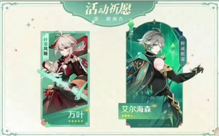 3.7下半卡池角色:枫原万叶+艾尔海森,武器池:裁叶萃光+苍古自由之誓