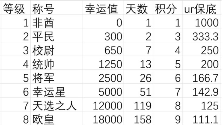 4、称号的抽卡积分加成是额外加成,即第二天的平民每抽可获得1+2=3积分,附称号升级时间(开服开始且周任务第一天满);
