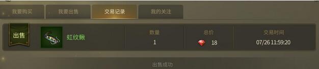 在交易记录中,玩家可以看到价格,交易时间和交易物品。