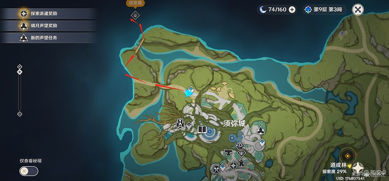 须弥城北边,无需解谜,与大门互动即可解锁秘境