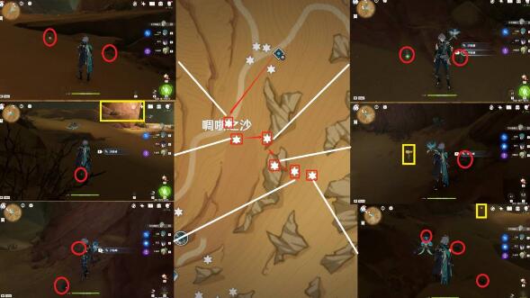 说明:从上图终点处返回继续前进,集中分布在沙虫周围。注意与沙虫保持距离,避免进入战斗。