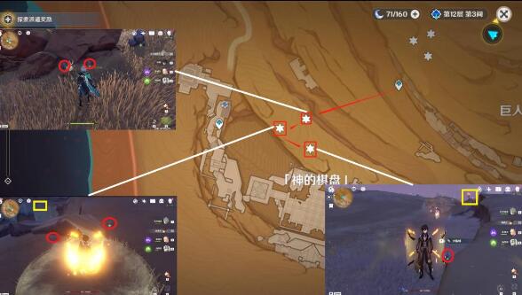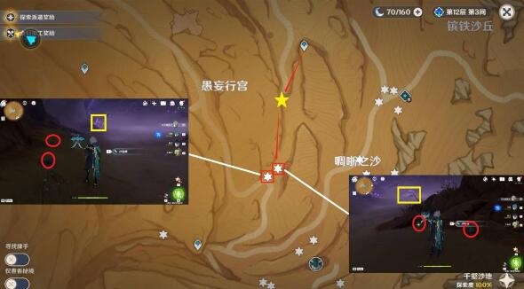 参考物(黄色方框):传送锚点、篝火遗迹。