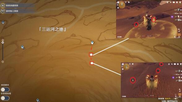 说明:传送至图示传送点,向东北方向走就可采集。仍需注意沙虫间隔性地从地下攻击。