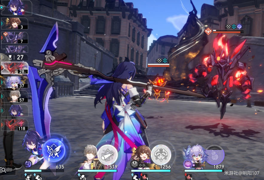 希儿,击破特攻为0,瞄准还有78跑条敌人的时候,可以看到敌人跑条被往后推到了144,削了66点。