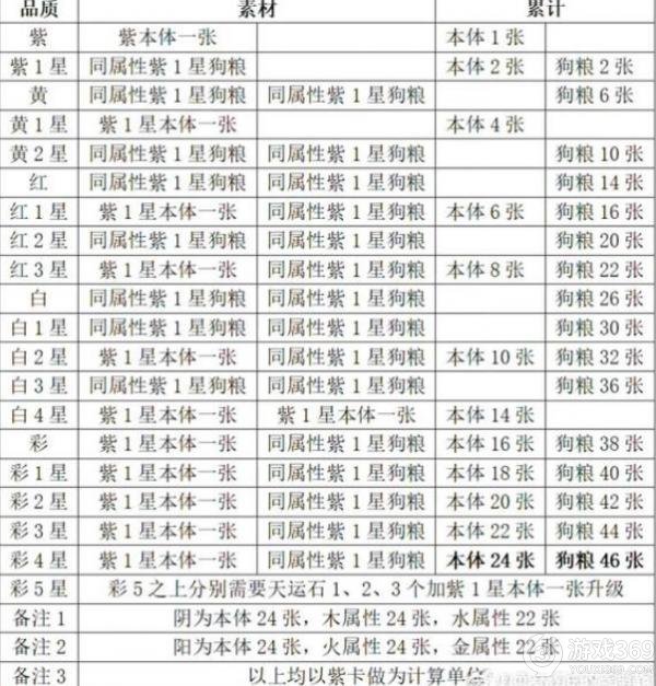 2、只有彩五角色才能用,需要彩5加紫1,再加石头。一个侠客目前毕业需要30张本体和46张紫色狗粮还有6个天运石。