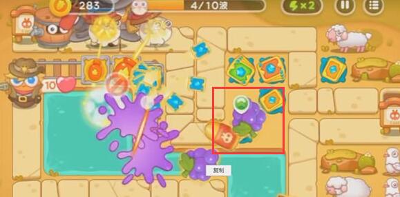 4、放置一个横扫葡萄在图示位置,让它攻击狂野抢手。