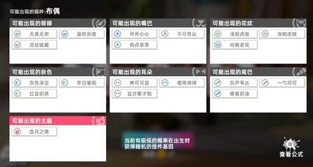 3.此时在心中一直默念刚刚记住的几个绿词条,然后看孵猫伙伴的猫,只要和刚刚自己记住的词条有一个一样的就换下一只,直到找到词条完全不一样的,这时点击请求。4.就有概率合成出主题猫,这样就提高了找猫的效率,不过双方的猫都是种猫时才推荐这样选。