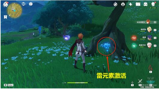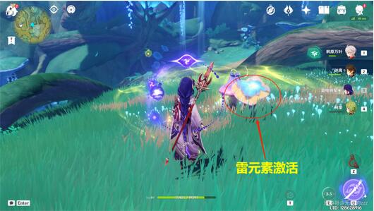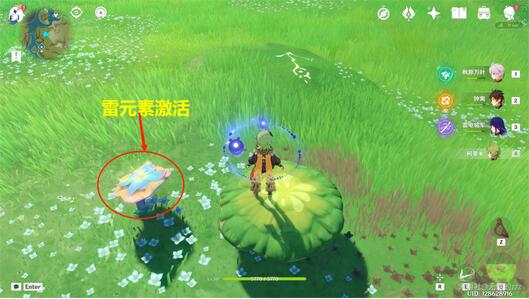 2.我们打败史莱姆以后,我们利用雷元素激活机关蘑菇