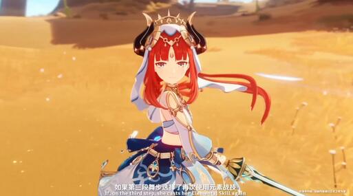 妮露:e技能设计得很有特色,分为了两种舞步,在第三段时进行区分,使用普通攻击话会变成水附魔的平a伤害,继续使用e技能的话则会上一个给敌人挂水的水环。然后队伍里只有水草角色时(至少各一位),可以让绽放反应更为猛烈,可以理解为水草绽放队的核心了。