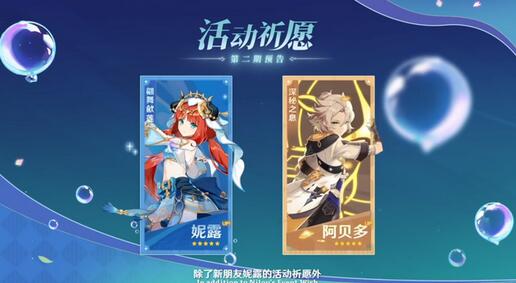 下半段角色卡池:是妮露与阿贝多复刻,之所以这次复刻的角色都是蒙德的,与这次3.1版本的蒙德节日有关,预计雷泽也会一起up,因为与雷泽的身世有关。