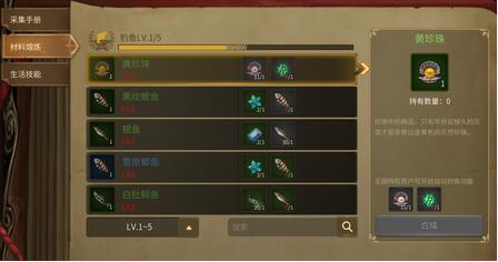 至指定地点,花费精力值进行垂钓,可获得不同品质的材料。