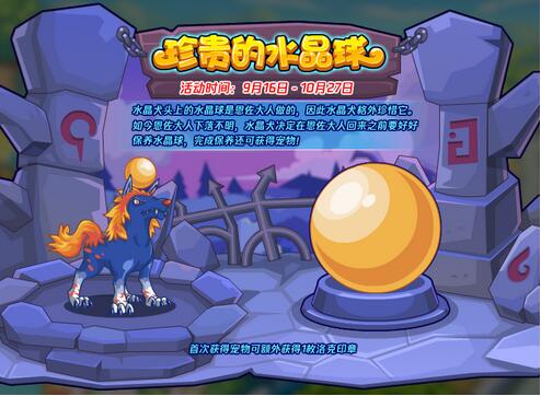 水晶犬头上的水晶球是恩佐大人做的,因此水晶犬格外珍惜它。如今恩佐大人下落不明,水晶犬决定在恩佐大人回来之前要好好保养水晶球,完成保养还可获得宠物!