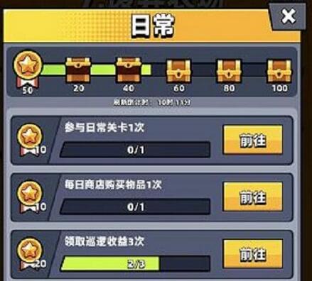 4.日常:每日任务完成相应的任务获取相应的积分,获取相应的宝箱。