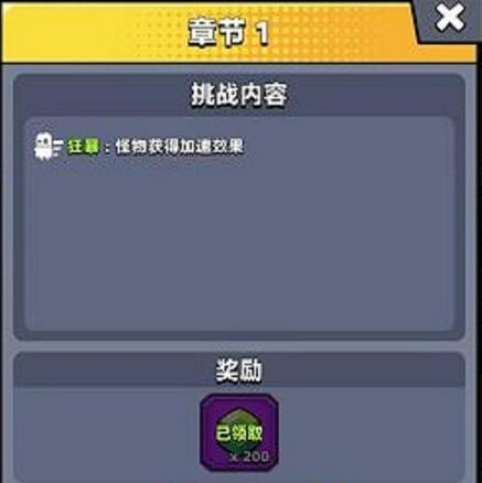 2.挑战:一个章节可获的400绿宝石,没通过一关主线关卡,开启一个章节。
