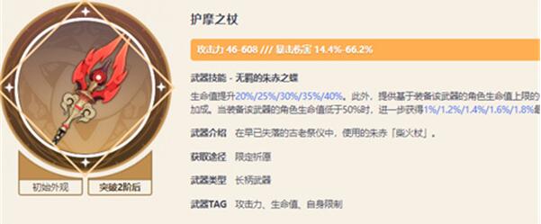 护摩之杖的武器技能也可以提高坎蒂丝所需的生命值加成,而且护摩之杖提供的66.2%的暴击伤害加成,也是坎蒂丝所需的。