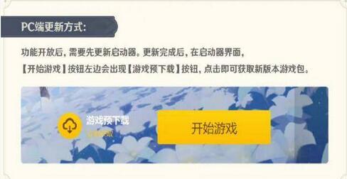 更新完成后,在启动器界面,【开始游戏】按钮左边会出现【游戏预下载】按钮,点击即可获取新版本游戏包。