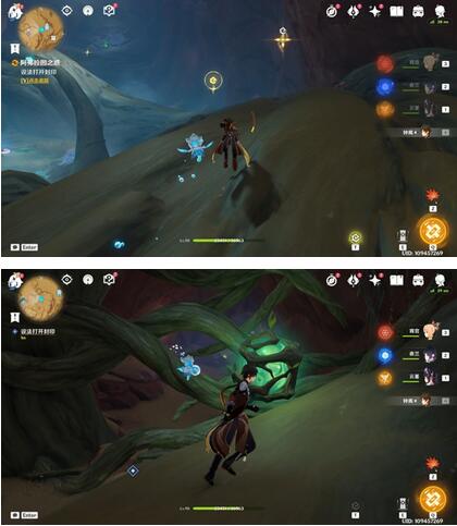 打破里面第二个封印后,往前走,然后往天上看,用四叶印上去开传送锚点然后继续跟着任务指引来到三个封印面前,打破这个绿球进入机器人驾驶内部