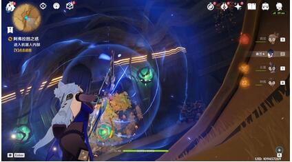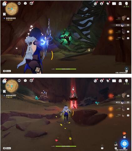 第二组「须陀流心」就在第一组「须陀流心」的对面,进门后左右两边各一绿球,然后右边的屏障击碎后,里面的天花板还有三个,记得抬头