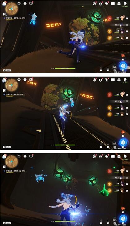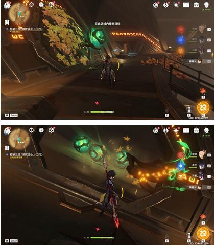 打破第二组「须陀流心」后,会出现一个小动画,然后往机器人驾驶舱中间通道下去找第三组「须陀流心」。
