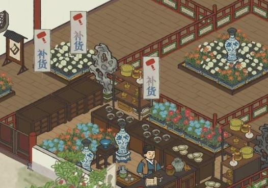 1.越州商行中可以打造货架,摆放之后进行货物售卖。