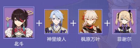 这套阵容依旧是一套武装队,依然是利用万叶进行雷水双扩散后使用绫人开始进行持续的输出。