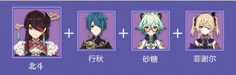 这套4星砂糖武装有着非常高的使用率,利用砂糖进行雷水双扩散北斗和行秋的抗打断能力以及减伤提高队伍整体的生存能力。