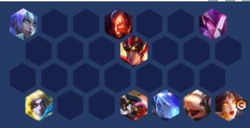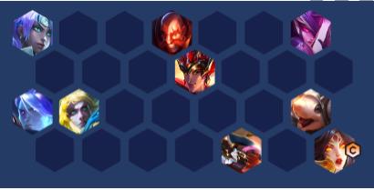 阵容优势就是全面琪亚娜和维鲁斯包括洛的控制可以让我们的输出环境非常好,2个刺客跳后排拉扯可以让我们的射手羁绊最大化攻速加成,比较怕神装的金龙土龙,如果场上没有狮子狗的话可以把夜之锋刃换成轻语。