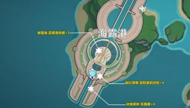 1、海露港:可获得蒜香面包棍、经验书等,位置如下图所示;