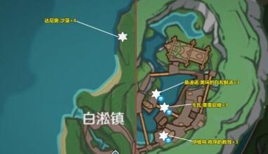 5、枫丹廷:可获得天赋书、经验、材料等,位置如下图所示;