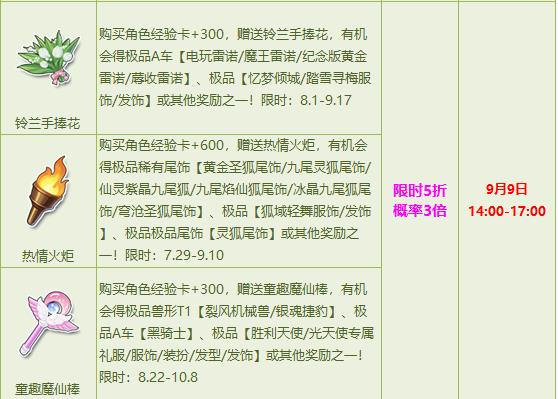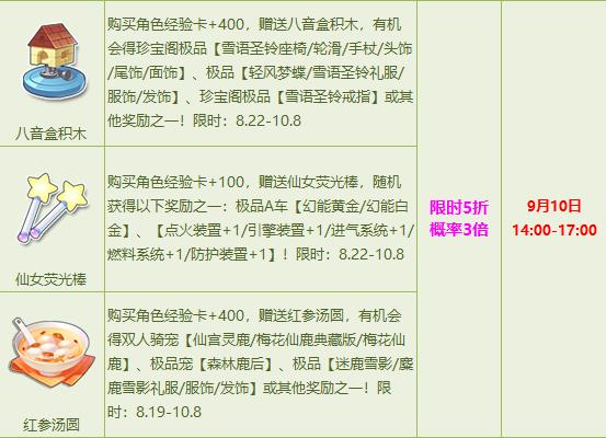 9月8日-9月10日,每日多款人气宝箱优惠来袭,限时5折福利,更有3倍概率助你赢取极品兽形T1【裂风机械兽/银魂捷豹】、极品A车【电玩雷诺/魔王雷诺/纪念版黄金雷诺/蓐收雷诺】、极品双人骑宠【仙宫灵鹿/梅花仙鹿典藏版/梅花仙鹿】等其他极品奖励,惊喜不容错过!